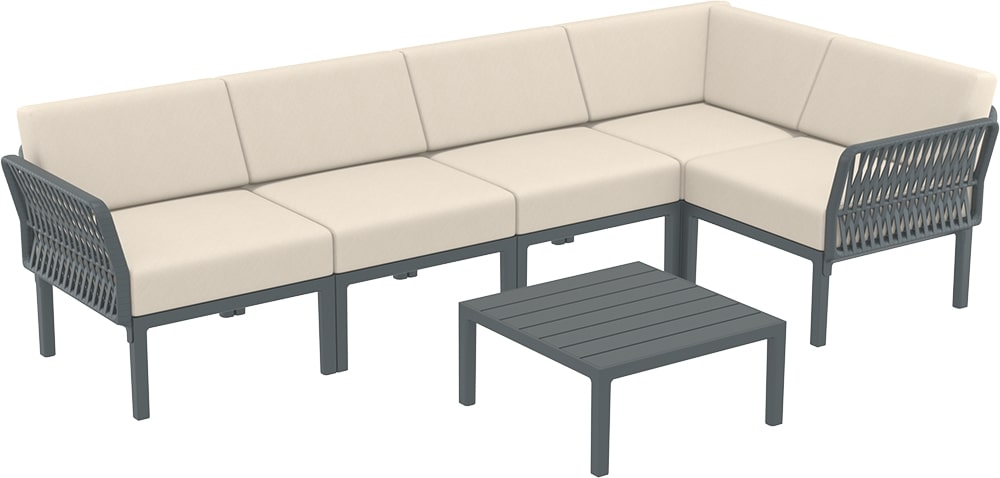 Portofino Lounge Corner Set to modułowy zestaw wypoczynkowy zaprojektowany z myślą o eleganckich przestrzeniach zewnętrznych i wewnętrznych. Łączy w sobie minimalistyczną estetykę z wysoką trwałością materiałów, co czyni go idealnym wyborem dla hoteli, restauracji, stref relaksu oraz domowych tarasów. Konstrukcja wykonana jest z żywicy wzmacnianej włóknem szklanym, dzięki czemu zestaw jest lekki, a zarazem wyjątkowo odporny na warunki pogodowe, wilgoć i promieniowanie UV. Nie zawiera elementów metalowych, więc nie rdzewieje, nie pleśnieje i nie wymaga konserwacji. Ażurowe boki dodają lekkości wizualnej, tworząc nowoczesny, „resortowy” charakter. Poduszki zapewniają wysoki komfort siedzenia i podparcia, a modułowa budowa umożliwia łatwe dopasowanie zestawu do dowolnej przestrzeni. System montażu oparć i podłokietników jest bezśrubowy – całość można złożyć szybko i bez narzędzi. Data wydania - 01.2026.