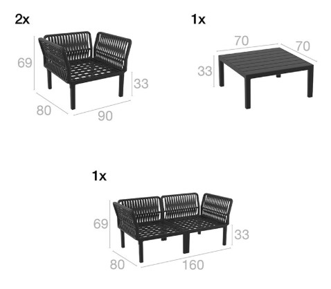 Portofino Lounge Set to funkcjonalny zestaw wypoczynkowy przeznaczony do nowoczesnych przestrzeni zewnętrznych i wewnętrznych. Solidna konstrukcja wykonana z żywicy wzmacnianej włóknem szklanym gwarantuje odporność na warunki atmosferyczne, wilgoć i promieniowanie UV, dzięki czemu meble zachowują kolor i formę przez lata, bez konieczności konserwacji. Brak elementów metalowych eliminuje ryzyko rdzewienia, a lekka forma ułatwia przenoszenie i aranżację. Oparcia i podłokietniki wyposażone są w bezśrubowy system mocowania, co pozwala na szybki montaż i demontaż bez narzędzi. Ażurowe boki dodają zestawowi charakterystycznej, lekkiej i współczesnej estetyki. Wygodne poduszki zapewniają komfort zarówno podczas krótkiego odpoczynku, jak i długiego relaksu. Data wydania - 01.2026.